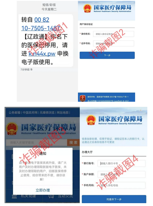 1月11日,遼寧省醫(yī)療保障局通過(guò)官方渠道發(fā)布辟謠通知表示,遼寧省醫(yī)保部門(mén)或相關(guān)政府部門(mén)未以任何名義發(fā)送此類(lèi)“醫(yī)保停用,更換電子版使用”的短信提醒,更不會(huì)通過(guò)短信發(fā)送任何網(wǎng)址請(qǐng)大家點(diǎn)擊。
