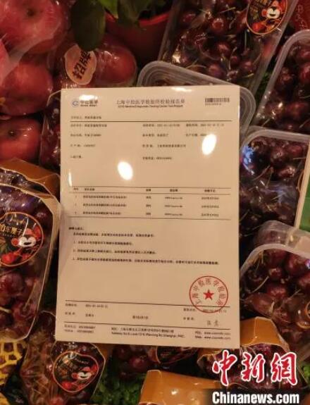 資料圖:某水果店中與車厘子放在一起的核酸檢測報告。孫權 攝