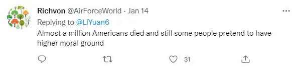 ▲美國都死了近百萬了,還是有些人假裝站在道德高地上。