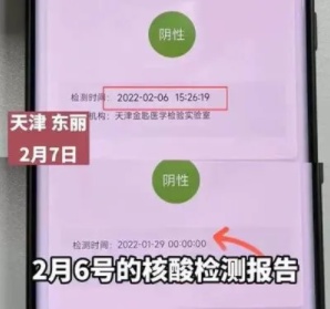工作人員在查驗張某核酸檢測證明時發(fā)現(xiàn),張某出具的截圖顯示檢測時間為2月6日,與手機APP系統(tǒng)中查詢結果1月29日明顯不符。
