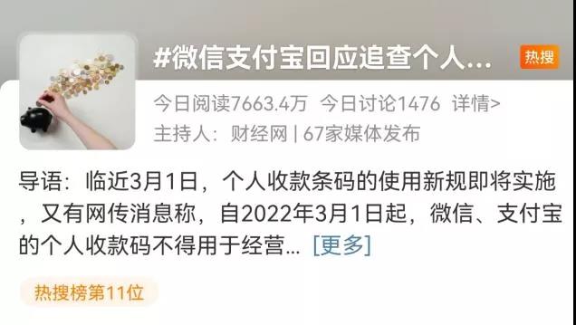 2月16日,“微信支付寶回應(yīng)追查個人收款碼近4年數(shù)據(jù)”這一話題沖上微博熱搜。