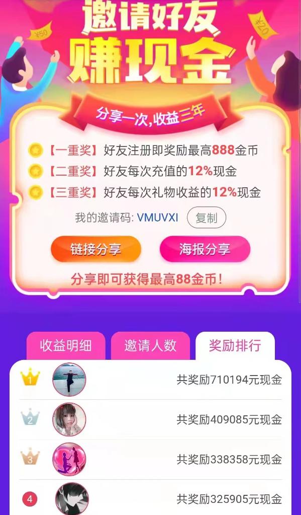 記者發(fā)現(xiàn),不少平臺通過宣傳“高額返現(xiàn)”“月入過萬”,吸引用戶“拉人頭”。根據(jù)相關(guān)App的獎勵機制,若邀請的好友每次進行充值提現(xiàn),便可獲得其充值提現(xiàn)額度的8%到12%作為獎勵,并表示“上不封頂”。