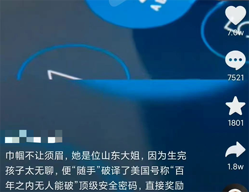 一名女性科學家多年苦心研究推演,在密碼學界令人嘆為觀止的成就,對國家安全作出巨大貢獻的經(jīng)歷,通過自媒體的“變奏”,最后的導向竟是“如何利用坐月子的時間”,這是何等荒唐!正如有網(wǎng)友評論“不要用這么簡短簡單的話去概括長久的個人努力”,這不僅是對王小云個人努力的消弭,更是對科學工作嚴肅性的消解?,F(xiàn)實中的科學工作需要日復一日的專注和腳踏實地的鉆研,而獵奇化的敘事強調(diào)的是過人天資,“牛人牛事”的打開方式除了傳遞“智商的差距”,既無法讓讀者獲得準確真實的信息,也難以開拓他們深層次的認知,以此博取的流量是低級趣味,是消遣時間。