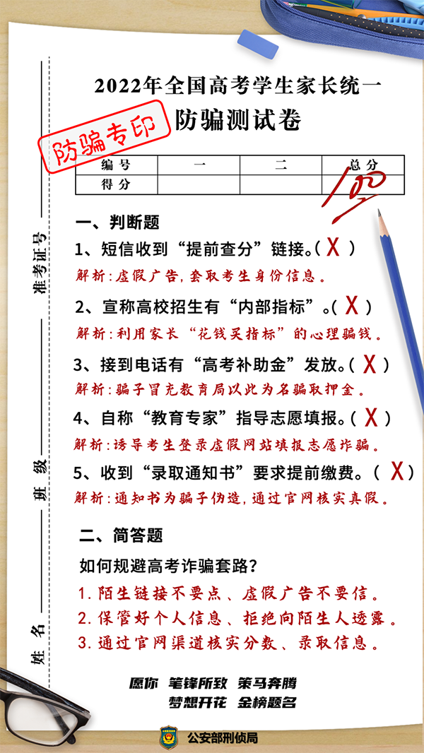 高考季來臨,考生們在考場上披荊斬棘、乘風(fēng)破浪,考場外也要警惕電信網(wǎng)絡(luò)詐騙的侵襲,今天刑偵君就來助您一臂力,這堂高考防騙課不容錯過!