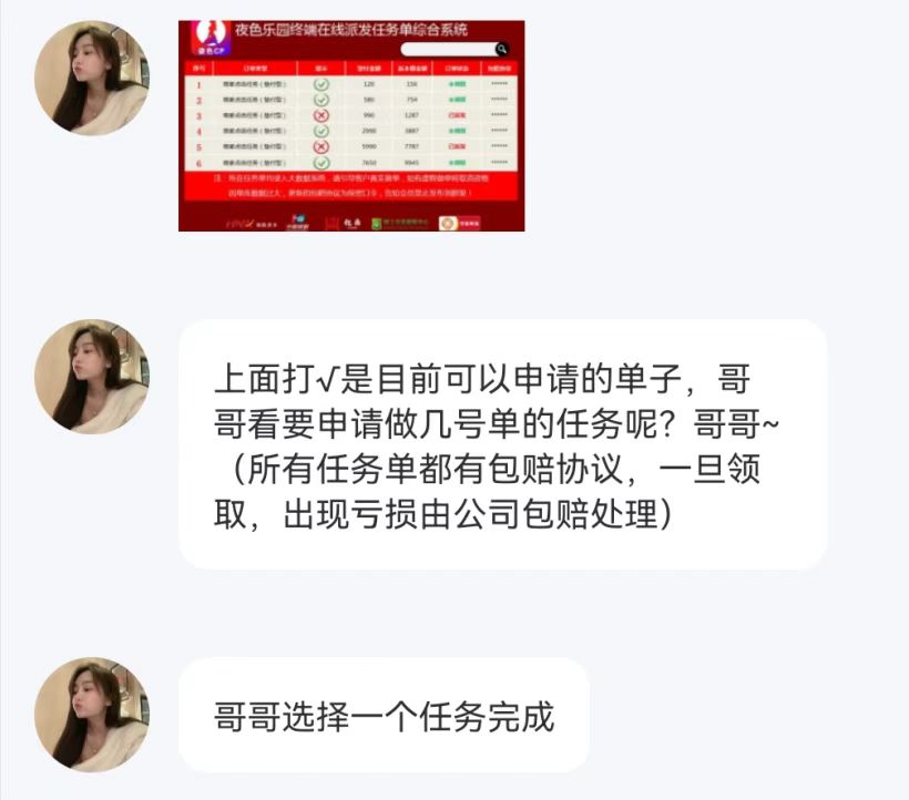 “美女客服”開始介紹“刷單”任務,聲稱只需進行幾次刷單任務,獲得贊助商報酬就可“免費約Pao”——美色+金錢的誘惑終究成為了重磅炸彈。