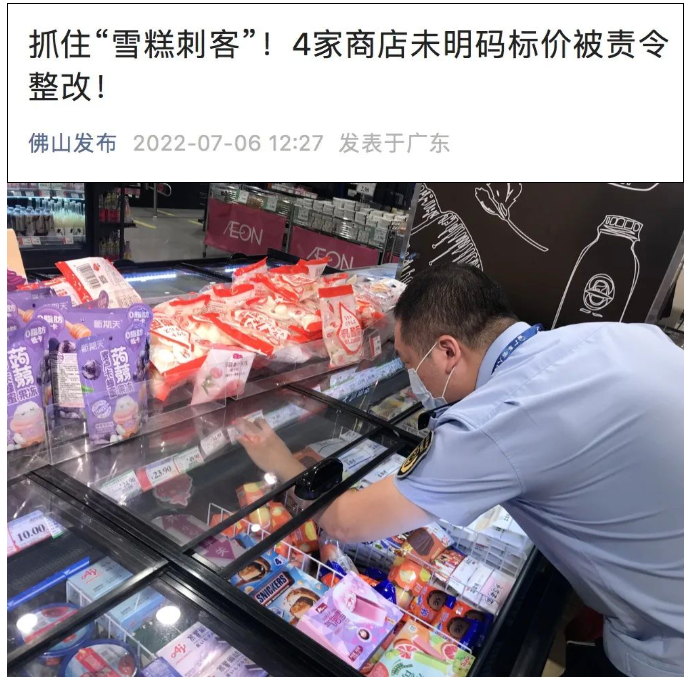 上海奉賢區(qū)市場監(jiān)管對雪糕開展價格專項檢查,重點檢查小賣部、超市、冷飲批發(fā)店等市場主體在銷售雪糕過程中,不按規(guī)定明碼標價、價格欺詐等價格違法行為↓
