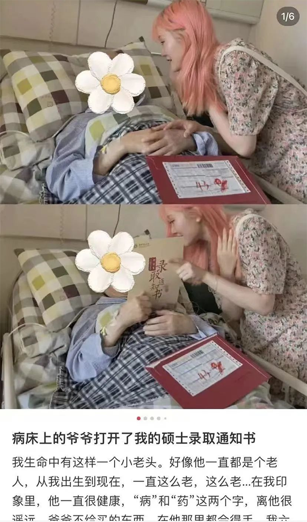“病床上的爺爺打開(kāi)我的錄取通知書(shū)”