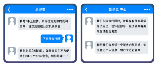 騙子偽裝成“疫情防控中心”或“衛(wèi)健委”工作人員,謊稱你的健康碼/檢測報告/流調(diào)異常,要求你前往公安機關(guān)核查。