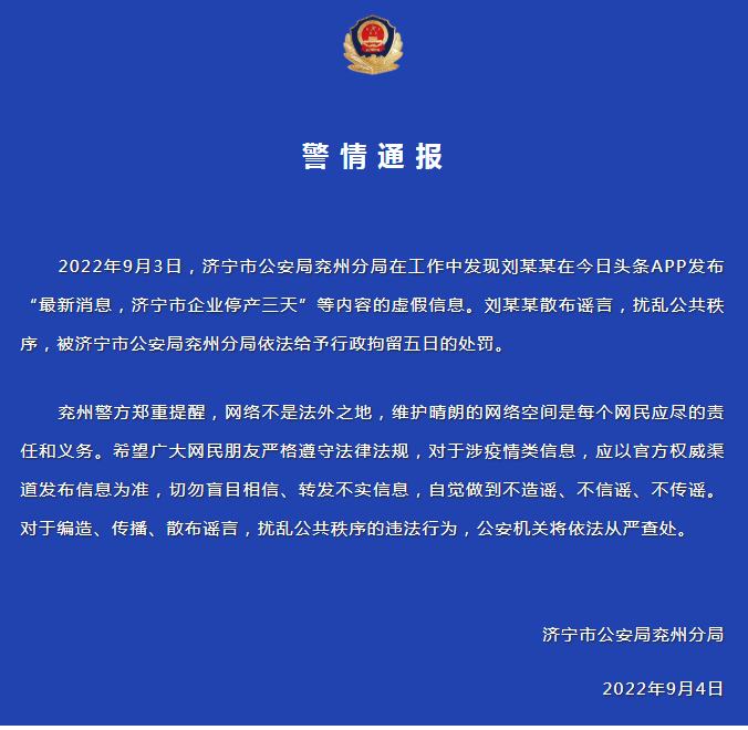 來源: 兗州公安發(fā)布時間: 2022-09-05 16:11責任編輯: 王敏
