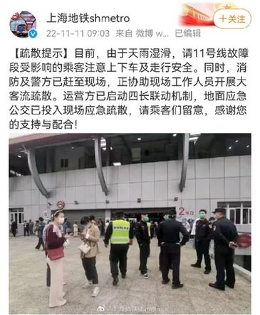 同時(shí),上海地鐵提醒市民乘客,如正在故障列車中,切勿擅拉緊急制動(dòng)拉手,根據(jù)車廂廣播指引配合區(qū)間疏散,疏散過(guò)程中,請(qǐng)聽(tīng)從現(xiàn)場(chǎng)指揮,有序撤離,切勿慌張。如正在車站,也請(qǐng)耐心等候,或及時(shí)調(diào)整出行路徑換乘公交。