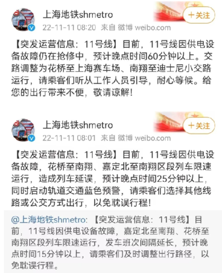 據(jù)最新消息,經(jīng)過(guò)緊急的現(xiàn)場(chǎng)搶修,11號(hào)線供電故障已排除,當(dāng)前軌道交通11號(hào)線已全線恢復(fù)正常運(yùn)營(yíng),乘客可正常乘坐?!?/p>