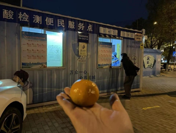 為驗(yàn)證傳言的真實(shí)性,11月27日晚,記者隨機(jī)找到一處核酸檢測(cè)便民服務(wù)點(diǎn),在食用了橘子約2分鐘后,且在沒有飲水及食用其他食物的情況下,參與了核酸采樣。