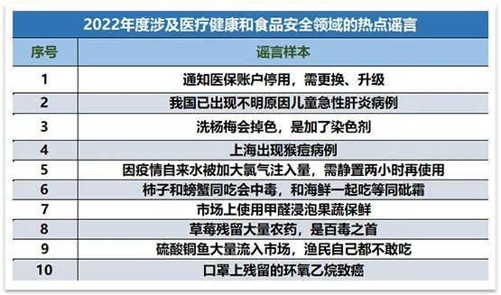 (圖表按照2022年中國(guó)互聯(lián)網(wǎng)聯(lián)合辟謠平臺(tái)發(fā)布的月度辟謠榜及行業(yè)辟謠榜發(fā)布時(shí)間正序排序,下同。)