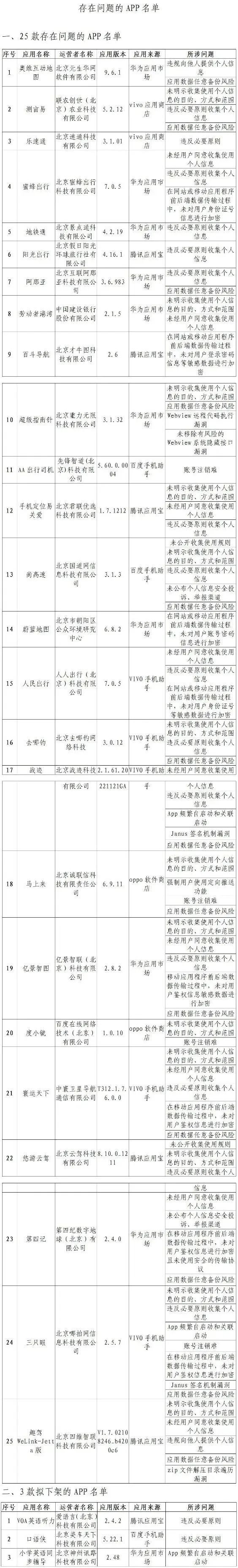 其中,25款A(yù)PP存在不同類型問題需整改,另有3款教育APP因之前問題整改不到位,擬通知應(yīng)用商店予以下架處置。