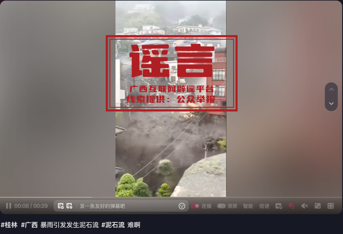 經(jīng)廣西互聯(lián)網(wǎng)辟謠平臺(tái)核實(shí),網(wǎng)傳視頻實(shí)際上是2021年07月03日,日本熱海市伊豆山山體發(fā)生大規(guī)模泥石流的視頻,網(wǎng)傳消息系移花接木造謠,并非發(fā)生于桂林。