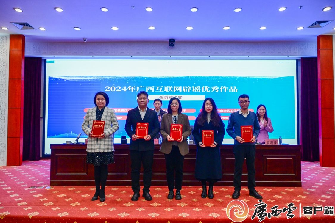 2025年1月8日,2024年廣西互聯(lián)網(wǎng)辟謠優(yōu)秀作品發(fā)布儀式在南寧舉行。自治區(qū)黨委網(wǎng)信辦副主任謝建偉出席發(fā)布活動(dòng)并為獲獎(jiǎng)代表頒獎(jiǎng)。