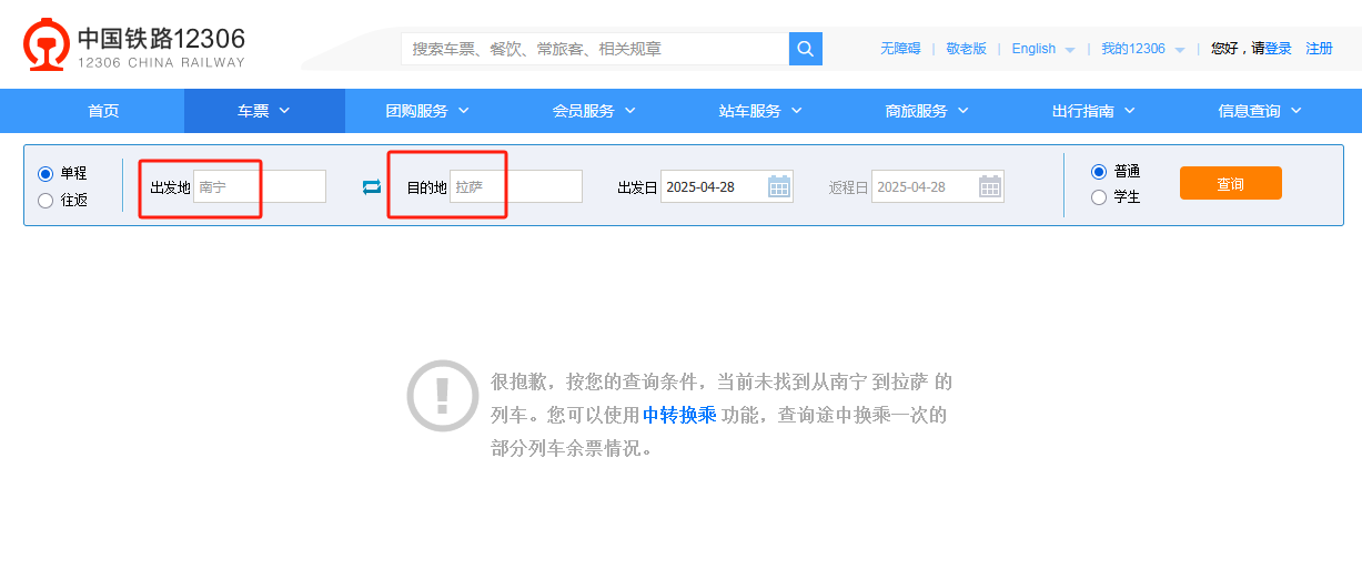 在中國(guó)鐵路12306官網(wǎng)中搜索車次D3164,顯示列車時(shí)刻表中無(wú)D3164次列車的信息,官網(wǎng)中也無(wú)法找到從南寧到拉薩的列車,網(wǎng)傳信息不實(shí)。