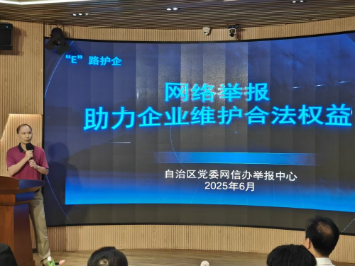 活動(dòng)中,自治區(qū)黨委網(wǎng)信辦舉報(bào)中心詳細(xì)介紹了“e路護(hù)企”工作品牌,并重點(diǎn)圍繞涉企網(wǎng)絡(luò)侵權(quán)舉報(bào)受理類(lèi)型、舉報(bào)方式、相關(guān)案例及辟謠在維護(hù)企業(yè)合法權(quán)益方面的作用,由點(diǎn)到面、深入淺出地向現(xiàn)場(chǎng)人員宣傳相關(guān)知識(shí),講解涉企侵權(quán)類(lèi)型和危害,指導(dǎo)企業(yè)通過(guò)舉報(bào)辟謠途徑,切實(shí)維護(hù)網(wǎng)上合法權(quán)益。