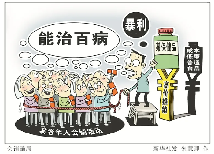 大量案例顯示,受生理、心理因素及社會(huì)因素影響,老年人保健養(yǎng)生心理最容易成為騙子的行騙目標(biāo)。落入陷阱的三個(gè)關(guān)鍵點(diǎn):一是受“免費(fèi)體驗(yàn)”“免費(fèi)旅游”誘惑;二是被詐騙分子噓寒問暖的“感情牌”打動(dòng);三是被冒牌專家“洗腦”,輕信了保健品被夸大的功效。