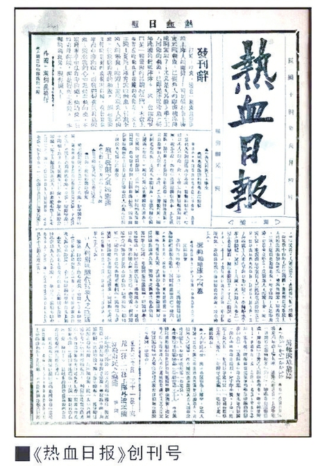 黨創(chuàng)辦的第一份日報(bào):《熱血日報(bào)》。1925年6月,為了指導(dǎo)反帝反封建斗爭,領(lǐng)導(dǎo)五卅運(yùn)動(dòng),中共中央決定創(chuàng)辦機(jī)關(guān)報(bào)《熱血日報(bào)》。主編瞿秋白針對五卅慘案說:“哪里有公理,只有熱血!”該報(bào)創(chuàng)辦不到一個(gè)月即被反動(dòng)派查封,共出24期。報(bào)紙的發(fā)行量一度超過具有十年歷史的上?!睹駠請?bào)》,不少讀者義務(wù)幫忙推銷并為報(bào)紙捐款?!稛嵫請?bào)》存在時(shí)間不足一月,但它鼓舞了全國人民的反帝愛國斗爭,成為深受歡迎的革命報(bào)紙。