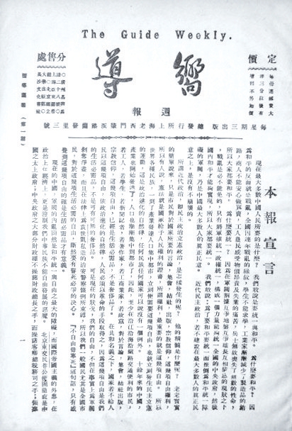 黨中央的第一個(gè)公開機(jī)關(guān)刊物:《向?qū)А?。根?jù)黨的二大決定,中共中央機(jī)關(guān)刊物《向?qū)А分軋?bào)在上海創(chuàng)刊。因其具有鮮明的革命性、深刻的思想性、犀利的戰(zhàn)斗性,被稱為“黑暗的中國社會的一盞明燈”,是大革命時(shí)期國內(nèi)最有影響力的刊物之一。據(jù)史料記載,1923年12月,在北京大學(xué)成立25周年紀(jì)念日舉辦的民意測驗(yàn)中,《向?qū)А分芸@得各界讀者愛讀票220票,名列全國周刊第一名。