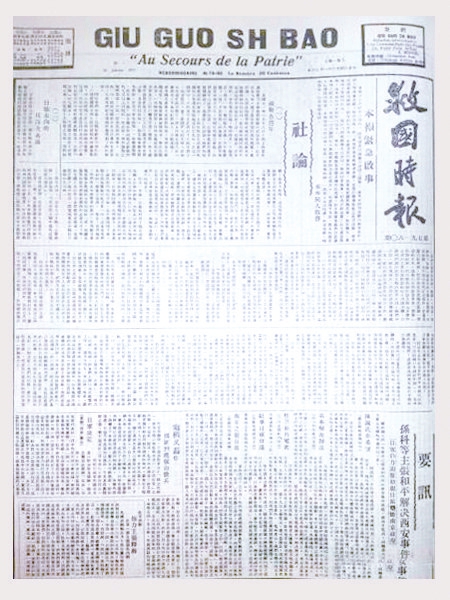 《救國時(shí)報(bào)》。這是黨在國外創(chuàng)辦的第一份報(bào)紙。1935年12月9日在巴黎創(chuàng)刊,由中國共產(chǎn)黨駐共產(chǎn)國際代表團(tuán)主辦,是黨在國外從事抗日宣傳的機(jī)關(guān)報(bào)。該報(bào)以宣傳黨的抗日民族統(tǒng)一戰(zhàn)線政策為主要任務(wù),以團(tuán)結(jié)整個(gè)中華民族一致對外、抵抗侵略為主要宗旨,發(fā)表了許多重要文章,刊載了中共中央文件和毛澤東的一些著作,不斷報(bào)道國內(nèi)的抗日救亡運(yùn)動(dòng)和各國華僑的抗日救國活動(dòng)。報(bào)紙的發(fā)行對象以海外華僑為主,國內(nèi)外發(fā)行多達(dá)2萬份,遍及43個(gè)國家,產(chǎn)生了廣泛的國際影響。