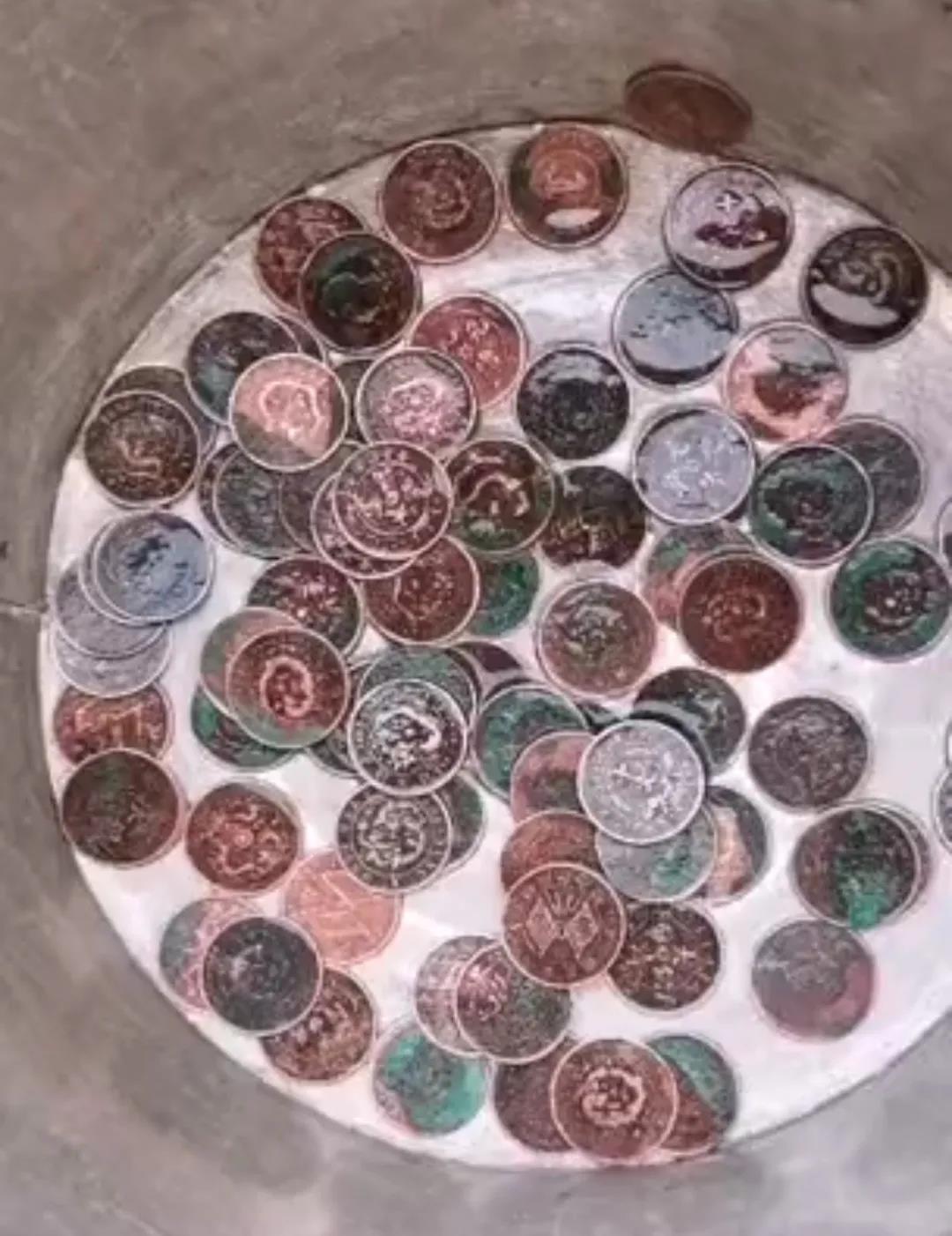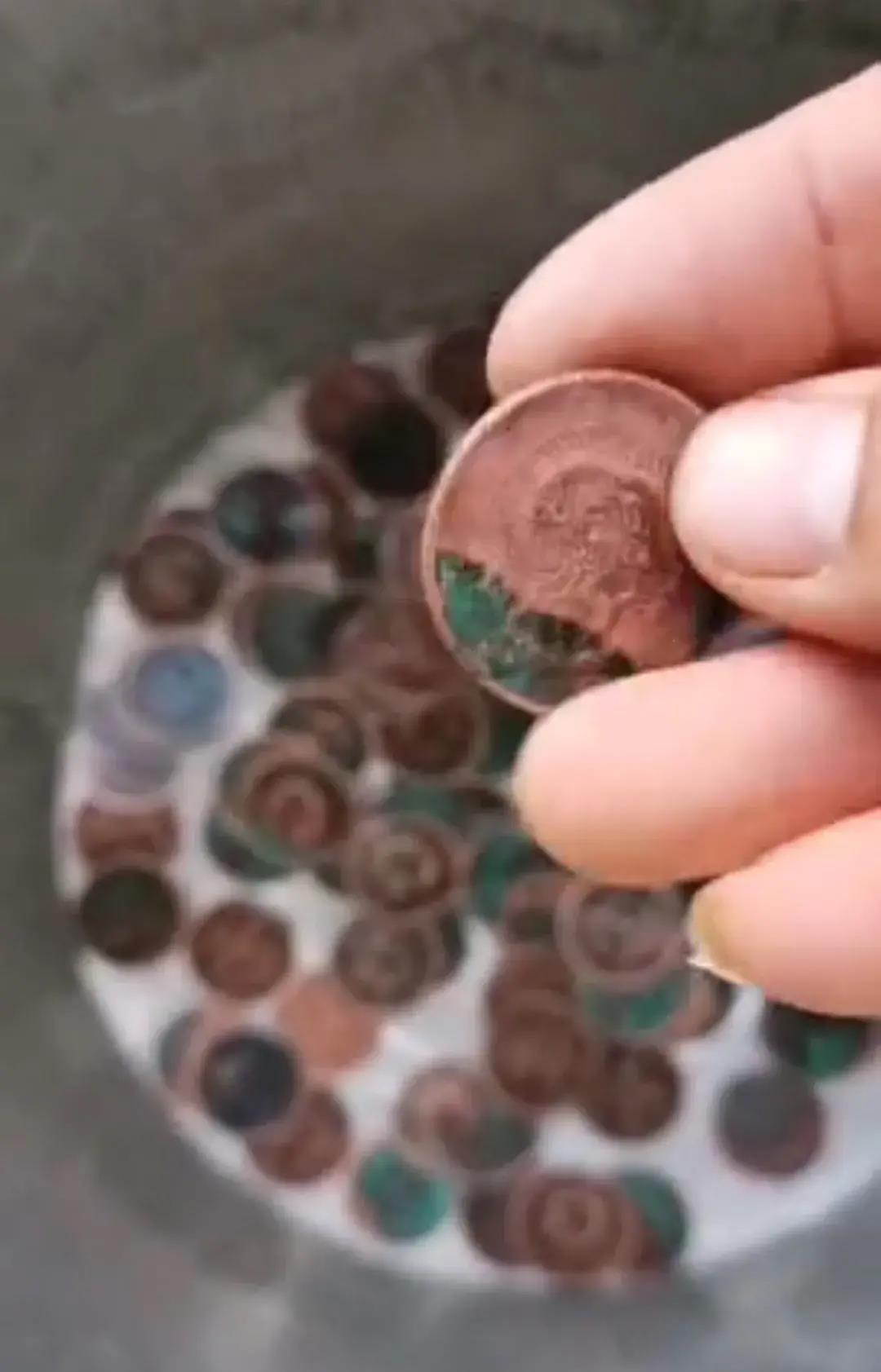 9月10日至9月15日,廣西某公司“三清三拆”施工隊在對葵陽鎮(zhèn)古樓村四隊荒廢的舊屋進行勾機作業(yè)時,挖出了一罐銅錢,引發(fā)現(xiàn)場圍觀群眾瘋搶。據(jù)在場群眾反映,罐子體積約有50升,銅錢上印有“光緒元寶”“大清銅錢”等字樣。