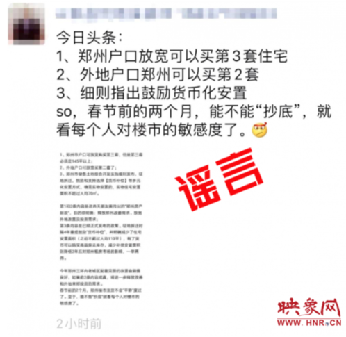一些房產(chǎn)中介在朋友圈轉(zhuǎn)發(fā)有關(guān)鄭州房產(chǎn)新政的內(nèi)容:鄭州市戶口可放寬購買第三套,但是第三套必須是145平以上;外地戶口可放寬買第二套了,新政目的很明確,釋放鄭州改善需求,放寬外地改善及投資需求。