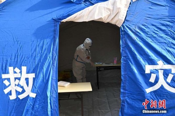 資料圖:河北石家莊長(zhǎng)九花園小區(qū),醫(yī)務(wù)人員正在進(jìn)行采樣準(zhǔn)備。翟羽佳 攝