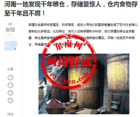 另外,官方部門以及權(quán)威媒體都沒有“回洛倉倉內(nèi)食物千年不腐”的相關(guān)消息。