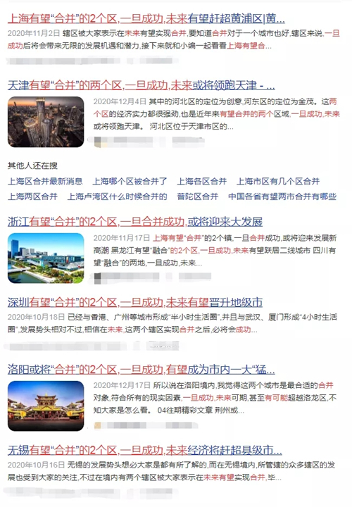 與此同時,在不少自媒體上,“上海有望‘合并’的2個區(qū),一旦成功,未來經(jīng)濟有望趕超黃浦區(qū)”等文章開始傳播。