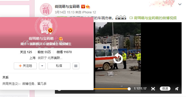 觀察發(fā)現(xiàn),健康博主@荷珥萌與寶莉萌是較早介入該事件網絡傳播的知名網友。3月14日,其發(fā)布視頻并配文“受到了二次傷害的車禍傷者”。視頻顯示,身穿橙色衣服的傷者撲倒在血泊之中,兩名身著白大褂的女工作人員直接抓女子衣服將其翻身,隨后在抬擔架過程中,參與其中的男性工作人員被現(xiàn)場車輛絆倒,導致傷者從擔架上摔落。