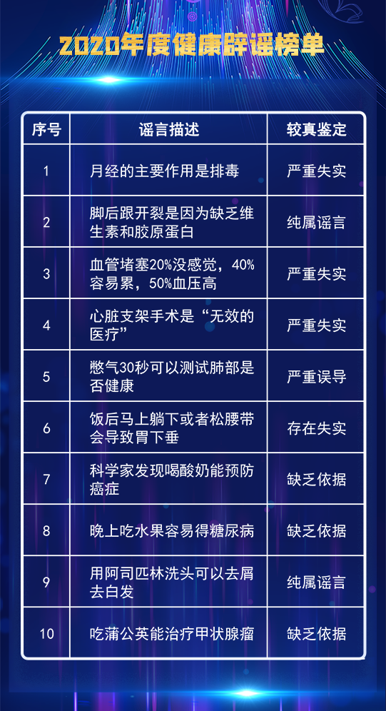 2020年度健康辟謠榜單