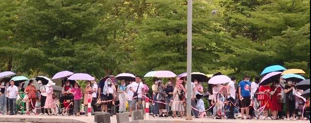 5月26日上午,廣西體育中心體育館外,現(xiàn)場市民頂著太陽排起了長隊(duì),隊(duì)伍一度長達(dá)兩公里。記者來到廣西體育中心體育館時(shí),剛好中午一點(diǎn)左右,烈日當(dāng)空,但現(xiàn)場仍有不少群眾排隊(duì)接種新冠疫苗。