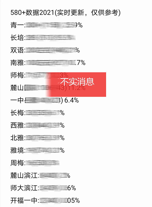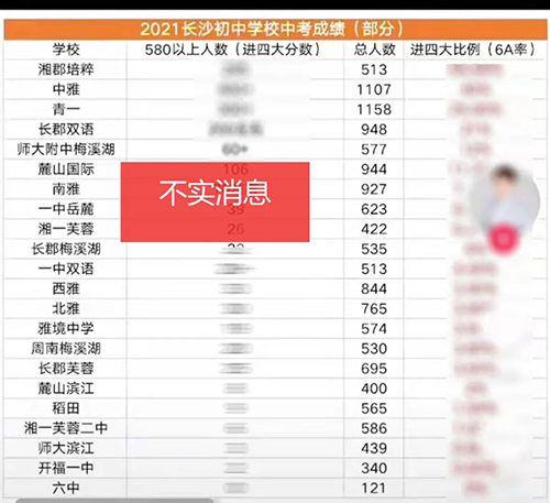 近日,正值初升高志愿填報(bào)期間,個(gè)別自媒體違規(guī)捏造、發(fā)布了有關(guān)中考580+人數(shù)、高中錄取分?jǐn)?shù)線、某集團(tuán)學(xué)校平均分等虛假消息。經(jīng)過長沙市教育局中招辦認(rèn)定,以下信息均為不實(shí)信息,嚴(yán)重誤導(dǎo)家長,擾亂招生紀(jì)律,造成了惡劣的社會(huì)影響。