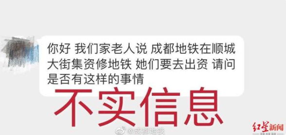 近日,記者從成都軌道交通集團(tuán)了解到,近日有網(wǎng)友反應(yīng),家中老人收到消息,成都地鐵在順城大街集資修地鐵,老人們準(zhǔn)備去出資。對(duì)此成都地鐵微博辟謠稱:“不實(shí)信息!請(qǐng)大家不要上當(dāng)受騙?!?/p>