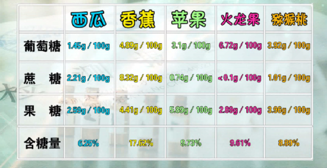 水果熱量的高低取決于含糖量,含糖量越高的水果,熱量越高。但西瓜雖然吃起來甜,含糖量卻不高,比常吃的香蕉、蘋果、火龍果等口味平淡的水果要低。