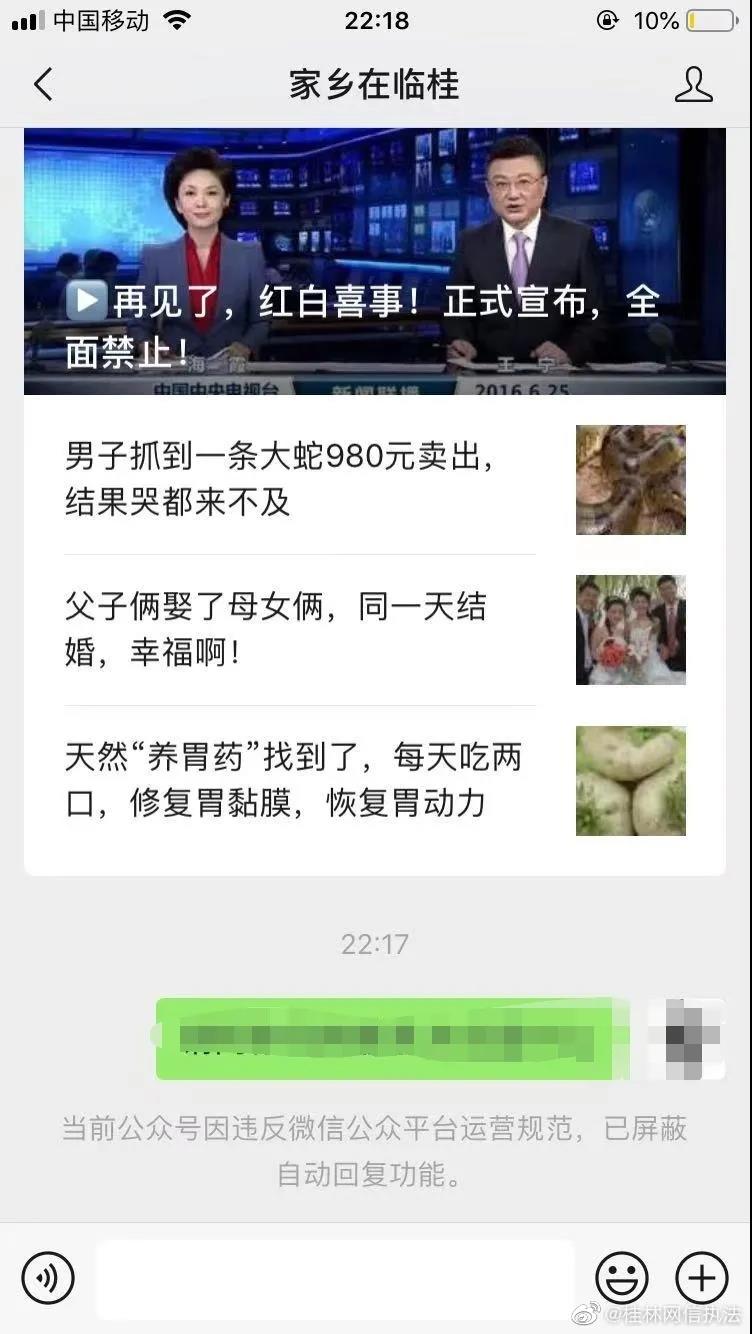今年以來,桂林已有3個本地公眾號被封停,分別是“家鄉(xiāng)在臨桂”、“我們的興安”、“荔o浦時事熱點”。