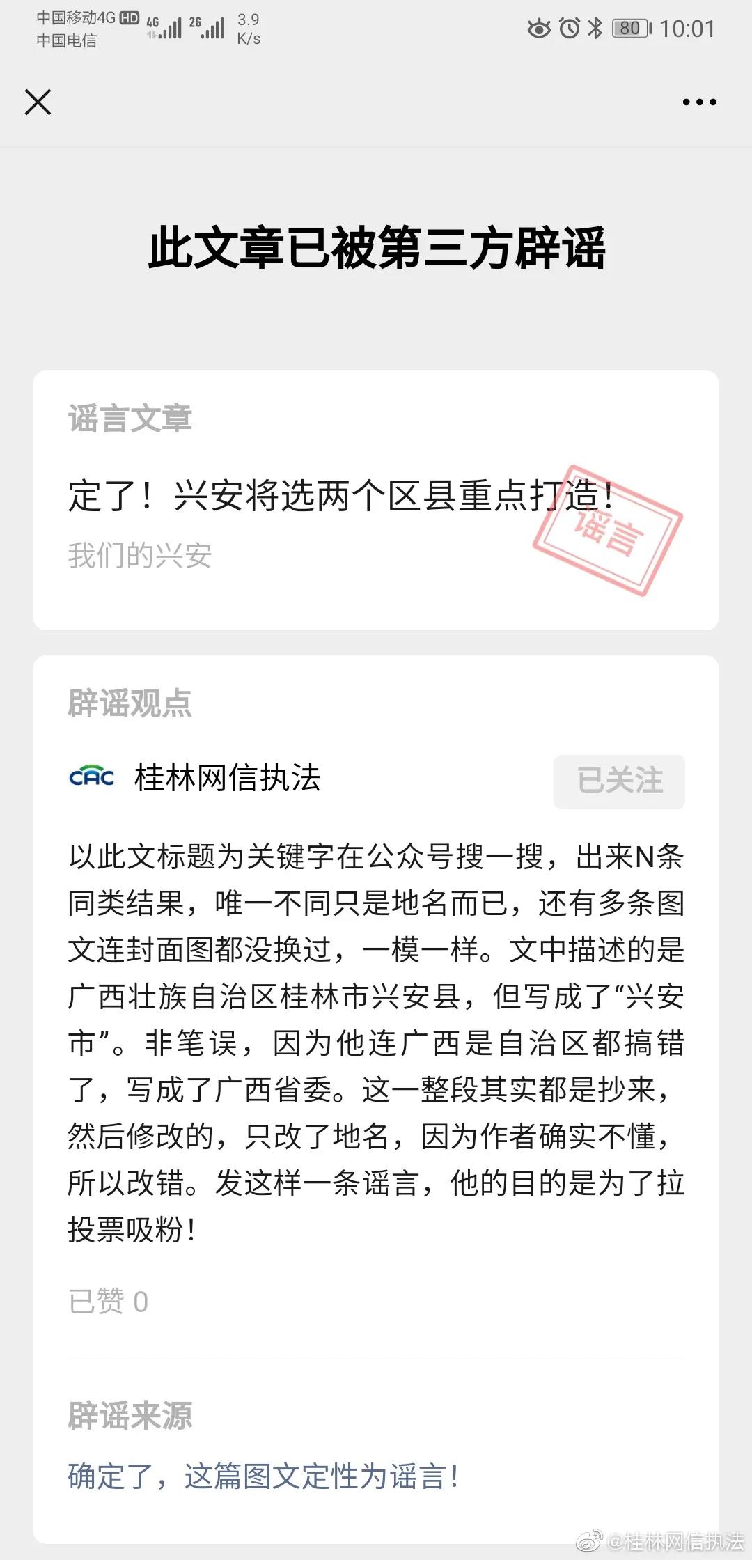微信公眾號【我們的興安】6月21日發(fā)布謠言信息【定了,興安將選兩個區(qū)縣重點打造】,桂林網(wǎng)信辦予以辟謠。