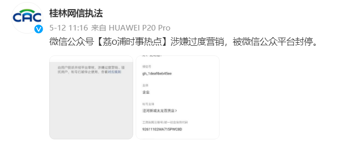 “桂林網(wǎng)信執(zhí)法”發(fā)布該公眾號相關(guān)信息