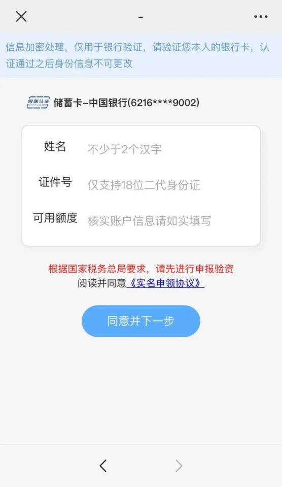 填完之后,又跳轉(zhuǎn)到一個(gè)需要填寫姓名、證件號和可用額度的頁面。