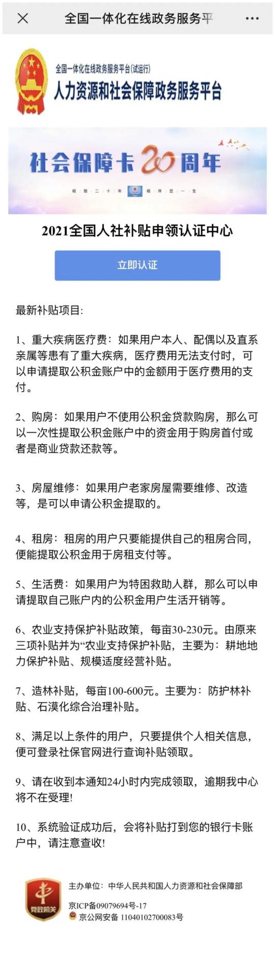 其次,國家根本沒有統(tǒng)一的所謂“全國人社補(bǔ)貼”。