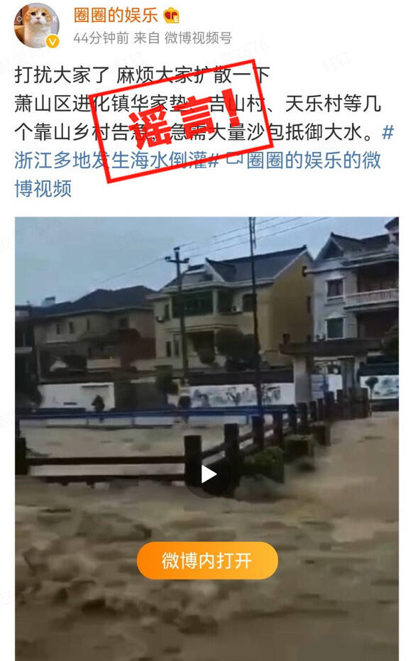網(wǎng)傳蕭山區(qū)進(jìn)化鎮(zhèn)多個村莊告急,急需大量沙包抵御大水。據(jù)進(jìn)化鎮(zhèn)工作人員消息,沙包資源充足,網(wǎng)傳系謠言。望廣大市民朋友不信謠,不傳謠。