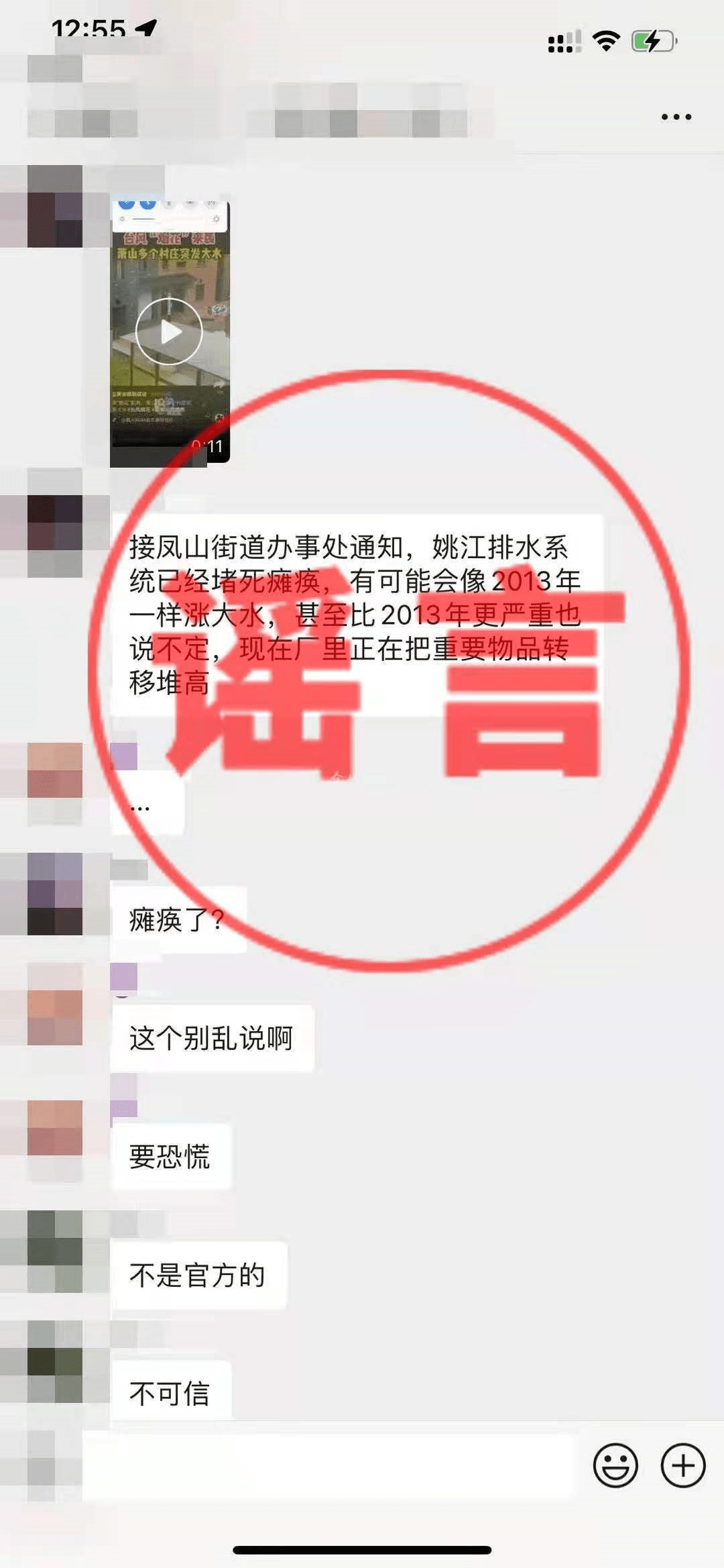 最近,有人在微信群里發(fā)布信息,稱“接鳳山街道辦事處通知,姚江排水系統(tǒng)已經(jīng)堵死癱瘓,有可能會像2013年一樣漲大水,甚至比2013年更嚴重,也說不定現(xiàn)在廠里正在把重要物品轉(zhuǎn)移堆高?!?/p>