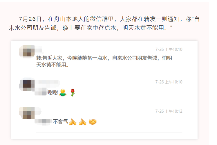 近日,舟山本地“有關(guān)讓市民儲水的消息”在網(wǎng)絡(luò)上流傳,經(jīng)證實(shí),為不實(shí)消息。
