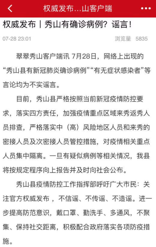 秀山縣有新冠肺炎確診病例 7月28日,網(wǎng)絡(luò)上出現(xiàn)的“秀山縣有新冠肺炎確診病例”“有無癥狀感染者”等言論。此消息引發(fā)網(wǎng)友廣泛關(guān)注。