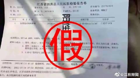 8月1日,幾個微信群在流傳一張泗洪某醫(yī)院出具的核酸檢測“陽性”報告。經(jīng)查,違法嫌疑人王某用軟件將朋友核酸檢測報告照片上的“陰性”改為“陽性”后,發(fā)至某微信群內(nèi)進行“惡搞”,后該圖片被多人轉載傳播,造成了嚴重不良影響。泗洪警方在查清事實真相后,根據(jù)《中華人民共和國治安管理處罰法》第二十五條規(guī)定,對虛構事實擾亂公共秩序的王某處以行政拘留。