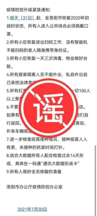 7月30日,一則關(guān)于新冠肺炎疫情防控的“網(wǎng)傳消息”在洛陽等多地市民的朋友圈里廣泛傳播。