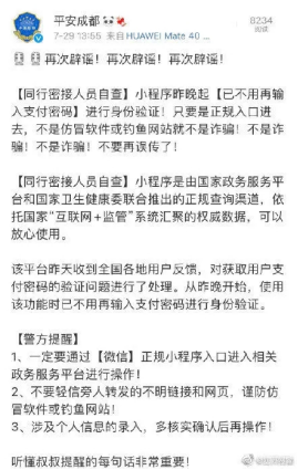7月31日,趙女士向大河網(wǎng)記者求助,近日在打開同行密切接觸人員自查小程序時(shí),提示需要輸入支付密碼,還需要輸入身份信息,這靠譜嗎?