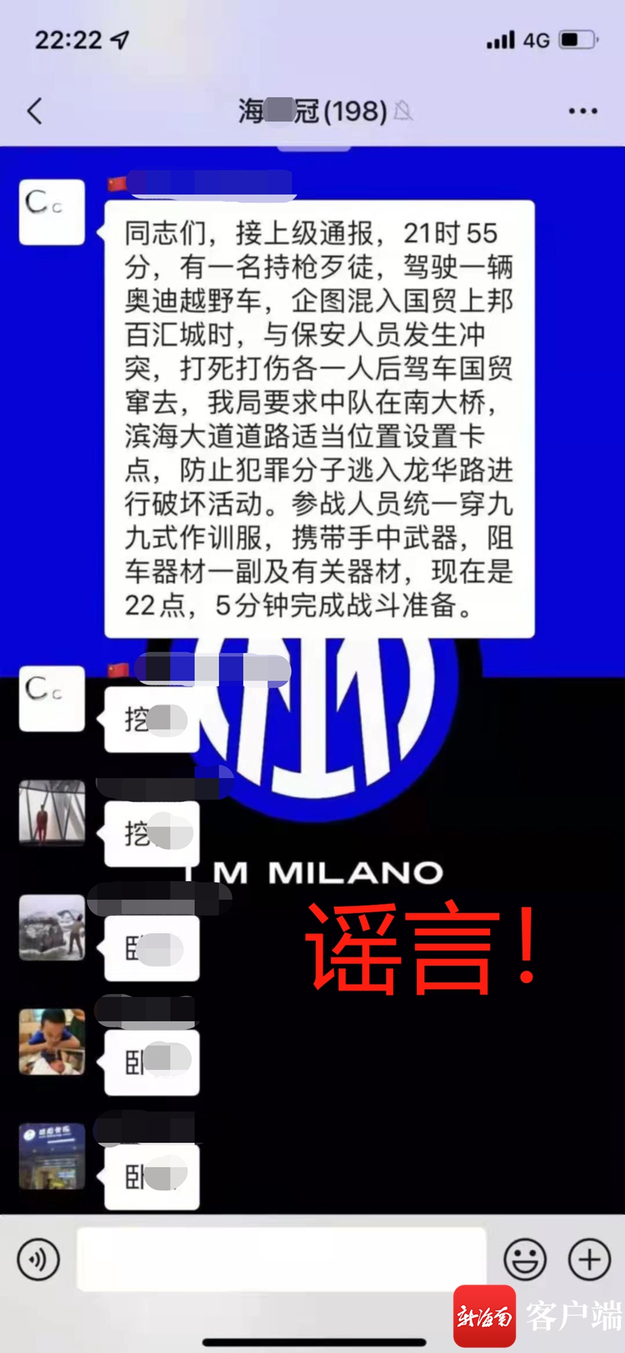網(wǎng)傳消息全文為:“同志們,接到上級通報,21時55分,有一名持槍歹徒,駕駛一輛奧迪越野車,企圖混入國貿(mào)上邦百匯城時,與保安人員發(fā)生沖突,打死打傷各一人后駕車國貿(mào)竄去,我局要求中隊在南大橋,濱海大道道路適當(dāng)位置設(shè)置卡點,防止犯罪分子逃入龍華路進行破壞活動。參戰(zhàn)人員統(tǒng)一穿九九式自作訓(xùn)服,攜帶手中武器,阻車器材一副及有關(guān)器材,現(xiàn)在是22點,5分鐘完成戰(zhàn)斗準(zhǔn)備?!?/p>